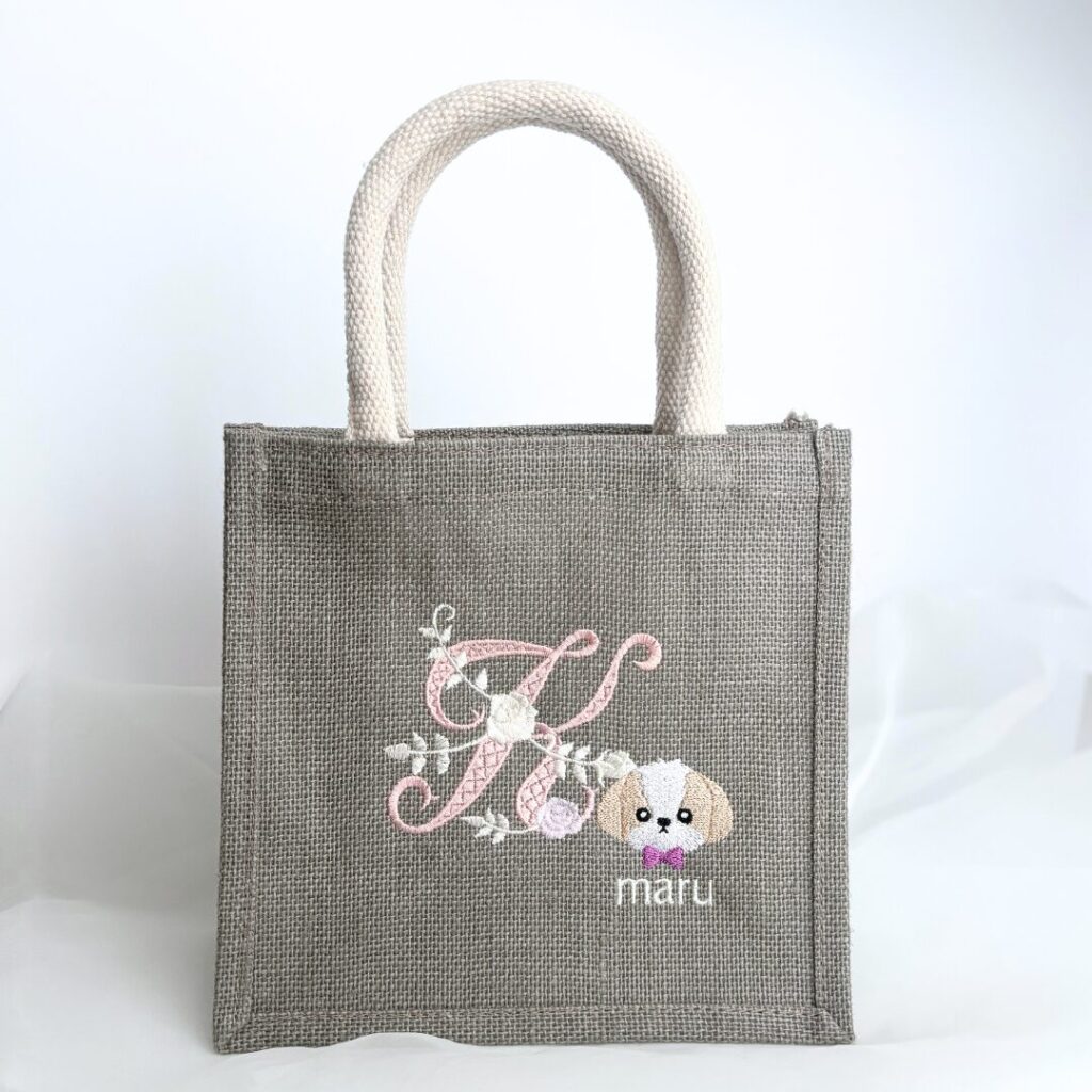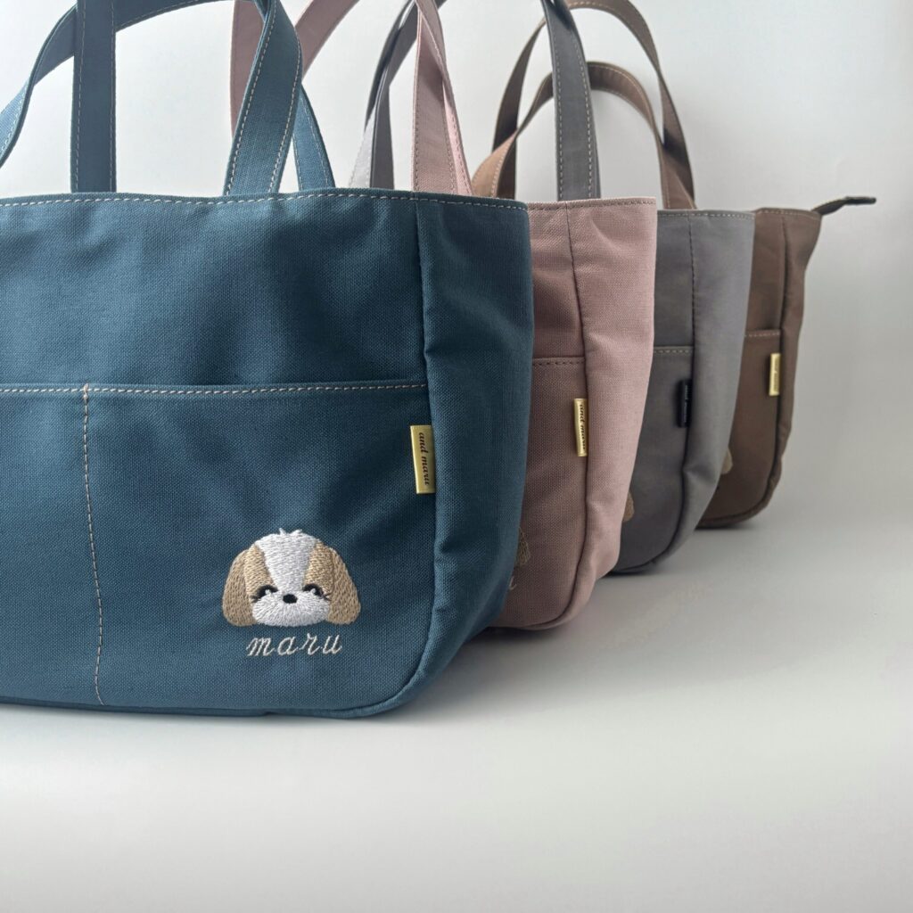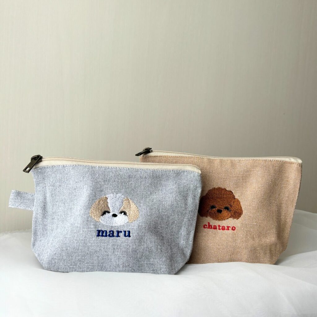 バッグやポーチなど、日常で使えるアイテムに刺繍。