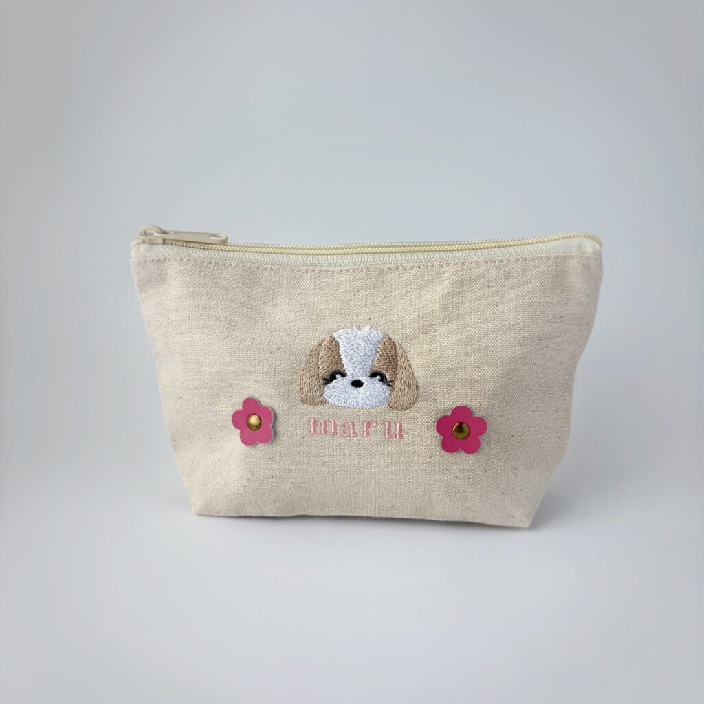 バッグやポーチなど、日常で使えるアイテムに刺繍。